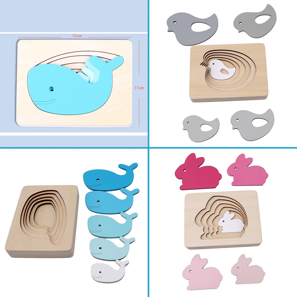 Set Of Creative Wood Multilayer 3d Jigsaw Puzzle Game Kids Childs Fun Wooden Toy